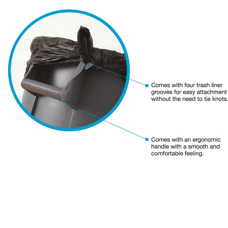 Ergonomic handle with bin liner retaining grooves