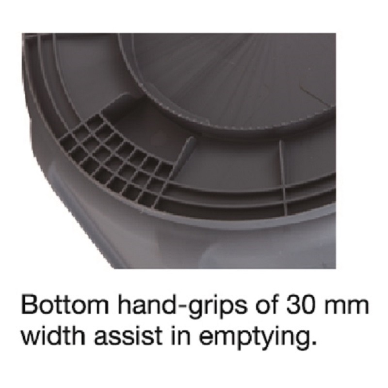 Ribbed base for strength with built in hand grip to assist emptying