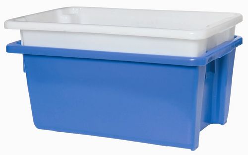 This 52l stack and nesting crate is a heavy duty food grade polypropylene plastic crate