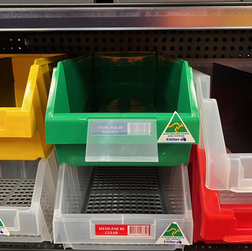 The clear label holder is designed specifically for the Fischer Stor-Pak, Mesh-Pak and Spare Parts Trays ranges
